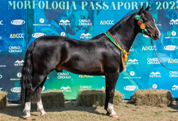 Já entre os “padrillos”, PO Nosotros, puxou a fila dos Machos, sendo eleito Campeão deste Passaporte, ele que também conquistou o Primeiro Prêmio de Categoria e Campeão no Campeonato Cavalo Adulto. O zaino filho de Destaque da Maya com Nochera Pichona, foi criado e exposto por Gonçalo Porto Silva, Estância Don Marcelino, Lavras do Sul, Rio Grande do Sul. “Bom o grande Campeão, um Cavalo muito equilibrado, uma boa linha de cima, boa profundidade, bom pescoço, boa garupa, cavalo que caminha com facilidade”, comenta o jurado.