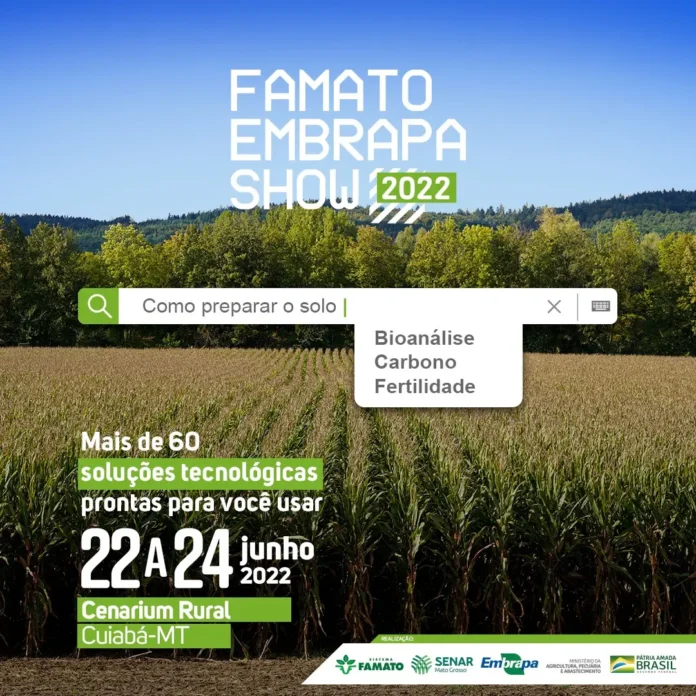 A partir de quarta-feira (22), o Cenarium Rural, em Cuiabá, se tornará um grande laboratório de agrotecnologias com a abertura do Famato Embrapa Show. O evento reúne mais de 60 soluções desenvolvidas pela Empresa Brasileira de Pesquisa Agropecuária (Embrapa) para apoiar agricultores e pecuaristas a terem mais eficiência e sustentabilidade na produção.