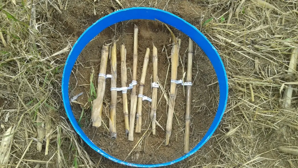 “Os ensaios foram realizados com colmos de milho infestados com Stenocarpella, que receberam uma aplicação de cama de frango, esterco de suíno, hidrolisado de peixe e lodo de esgoto compostado, em concentrações semelhantes ao nitrogênio fornecido pela aplicação de ureia, na superfície do solo. Estes colmos de milho foram mantidos em condições de campo por três meses em Lavras e Sete Lagoas, MG. Colmos infestados somente com o patógeno também foram mantidos na superfície do solo ou então incorporados ao solo, representando as formas de manejo realizadas pelos agricultores”, explica Mirian Faria da Universidade Federal de Lavras.