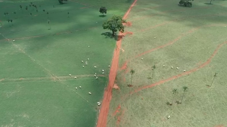 Um exemplo é a Fazenda Santa Maria, no município de Nova Veneza, em Goiás, que implantou a pastagem com o capim Tifton 85 e mesmo no fim de novembro, com chuvas escassas e irregulares, exibia amplo pasto verde – mesmo sem utilizar nenhum mecanismo extra de irrigação. Ao lado da mesma propriedade é possível ver por imagens de drone, outro campo onde a pastagem é de capim braquiária, que estava bem mais esparso e seco.